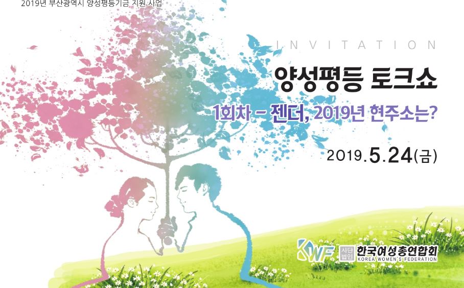 [부산=일요신문] 박영천 기자 = 사단법인 한국여성총연합회(공동대표 최명희 이옥희)는 24일 오후 2시 부산디자인센터 세미나실A에서 ‘양성평등 토크쇼 – 젠더비무장지대 1회’를 개최한다.