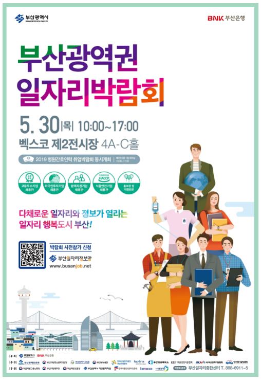 부산시(시장 오거돈)는 30일 오전 10시 벡스코 제2전시장에서 지역 우수 중소·중견기업과 지역 구직자들의 일자리 미스매치 해소를 위한 ‘2019 부산광역권 일자리박람회’를 개최한다.