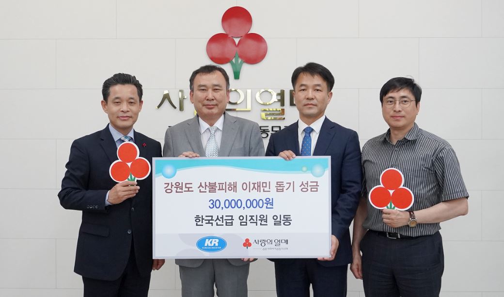 이날 성금 전달식에 참석한 김명식 한국선급 경영기획본부장은 “산불로 많은 피해를 입은 강원지역 주민들에게 조금이나마 도움이 되고자 임직원들이 마음을 모았다”며 “이재민들이 희망을 가지고 하루 빨리 다시 일어나길 바란다”고 말했다.