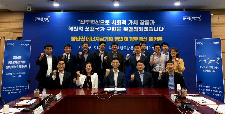 한국남동발전(사장 유향열)은 지난 5일 한국남동발전 본사 대회의실에서 ‘동남권 에너지공기업 협의체 정부혁신 해커톤’을 개최했다.