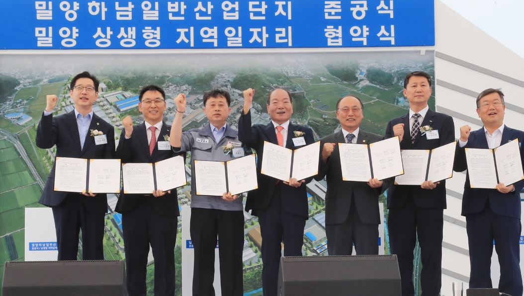 경남 밀양 상생형 지역일자리 협약식이 지난 24일 오후 2시 밀양 하남일반산업단지 내에서 준공식과 함께 개최됐다.