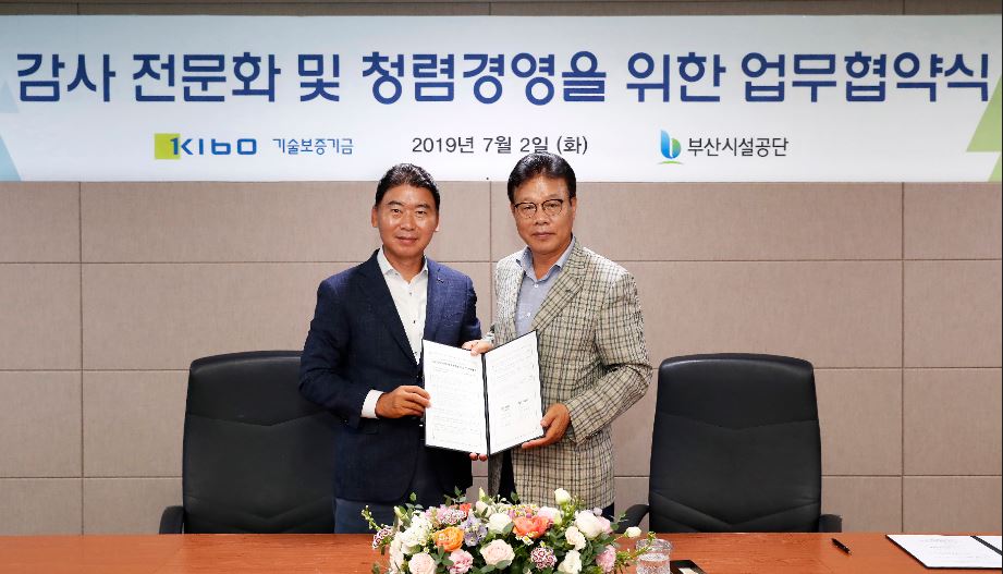 [부산=일요신문] 정동욱 기자 = 기술보증기금(이사장 정윤모, 이하 ‘기보’)과 부산시설공단은 지난 2일 부산시 문현동 소재 기보 본사에서 감사 전문화 및 청렴경영을 위한 업무협약을 체결했다.