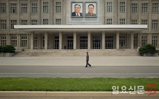 평양 전승기념관에 김일성 주석, 김정일 국방위원장의 초상이 걸려 있다. 사진=사진공동취재단