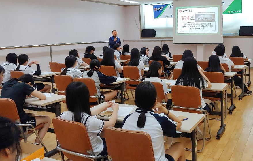 농협하나로유통 김해유통센터 학생 진로체험교육 실시 모습
