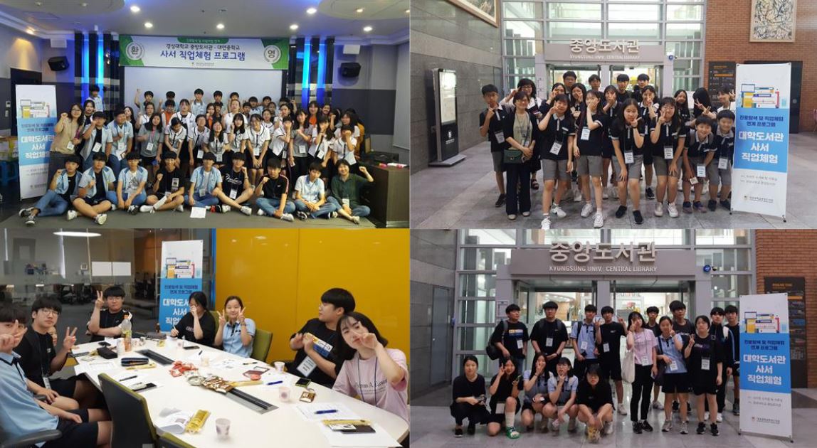 지난 6월과 7월에 용호중학교, 만덕고등학교, 대연중학교 학생 약 90여명이 참여했으며 도서관 사서 진로에 대한 안내와 도서관 전반에 대한 설명, 사서 멘토들과 한국십진분류 방법에 따른 도서 구분을 통해 직업 현장 시간을 가졌다.