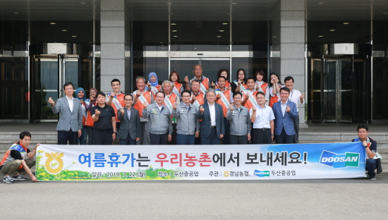 이날 함께 동참한 두산중공업은 2011년 창원시 귀산마을 등 7개 경남지역 농촌마을과 자매결연을 맺고 매년 대규모 임직원들이 농촌일손돕기 봉사활동을 지속적으로 펼쳐왔으며, 취약농가의 주거 환경을 개선하는 ‘클린하우스’와 장비지원을 통한 마을 환경개선 등 다채로운 봉사활동을 통해 모범적인 농촌사랑운동을 실천해 왔다.