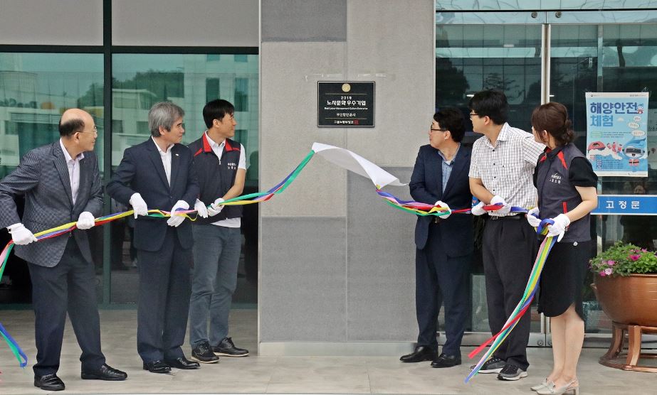 부산항만공사는 지난 9일 고용노동부로부터 ‘2019년도 노사문화 우수기업’으로 선정됐으며, 26일 최기동 부산지방고용노동청장이 공사를 방문해 인증서를 전달하고 인증패 제막식을 가졌다고 28일 밝혔다.