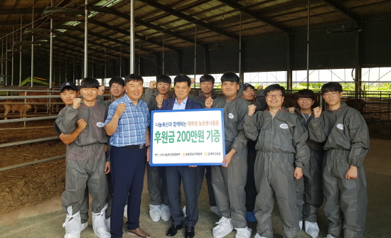 나눔축산운동본부는 16일 김해시 생림면 소재 축산농가에서 경상대학교 축산학부 소속 16명으로 구성된 ‘나눔축산 대학생 농촌봉사단’에 후원금 200만원을 전달했다.<사진>