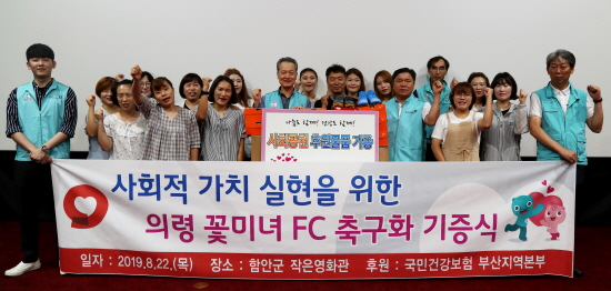 경남 의령군 ‘사랑의 집’ 소속 여성지적장애인 축구단 ‘의령 꽃미녀FC’의 축구에 대한 열정을 응원하기 위해 실시한 이번 후원은 국민건강보험공단 임직원들의 자발적인 기부를 통해 모은 건강나눔기금으로 실시했다.