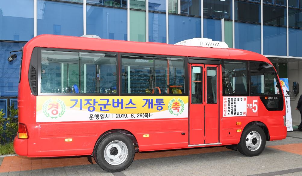 기장군은 지난 27일 오전 정관보건지소에서 ‘기장군버스’ 개통식을 열고 28일부터 운행을 시작한다. 앞서 기장군은 8월 12일 ㈜기장교통과 업무협약을 체결한 바 있다.