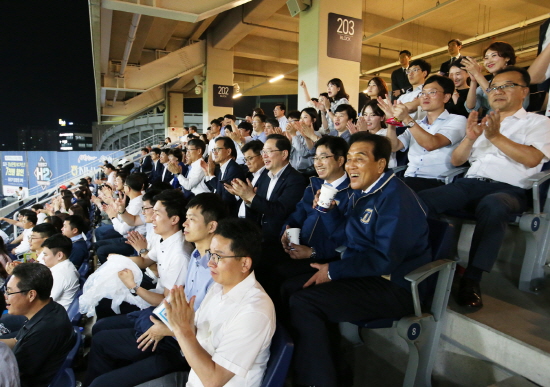 황윤철 은행장과 임직원 300여명은 창원NC파크를 찾아 2019 KBO리그 NC다이노스 대 KT위즈 경기를 관전했다.