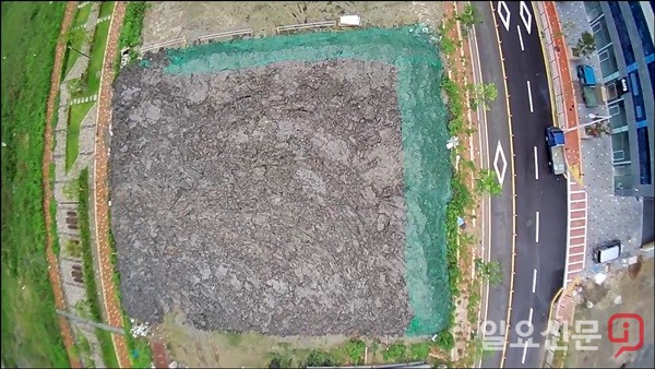 삼정그린코아가 건설현장 인근에 불법 야적한 건설오니 모습.