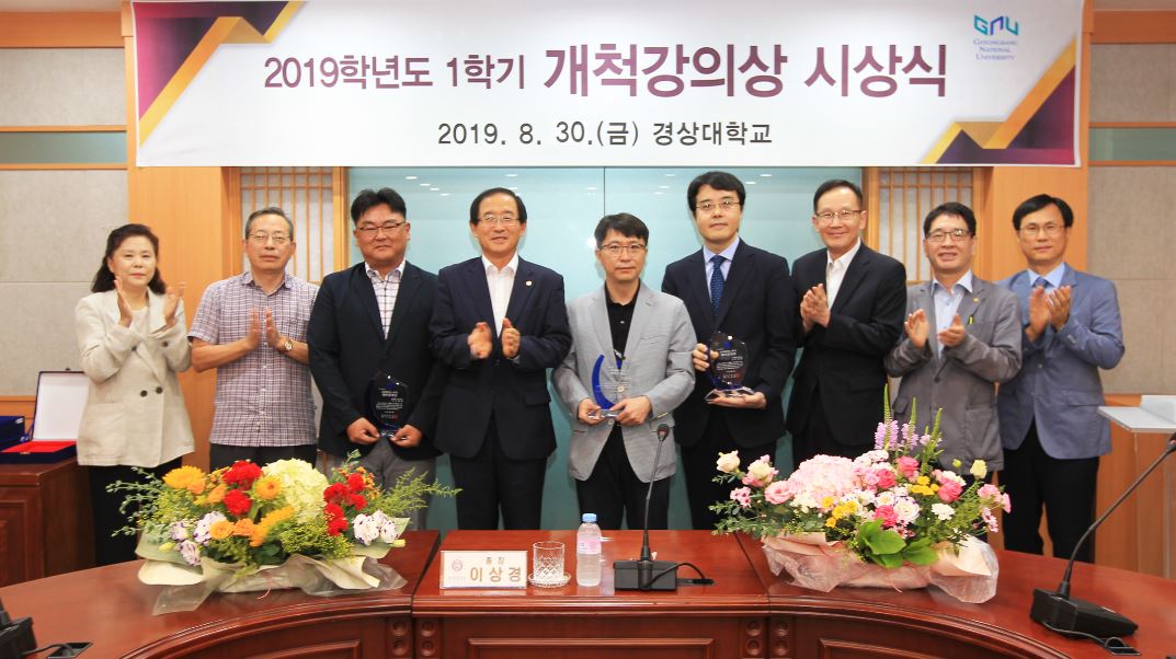 국립 경상대학교(GNU·총장 이상경)는 30일 오전 대학본부 4층 소회의실에서 2019학년도 1학기 개척강의상 시상식을 개최했다.