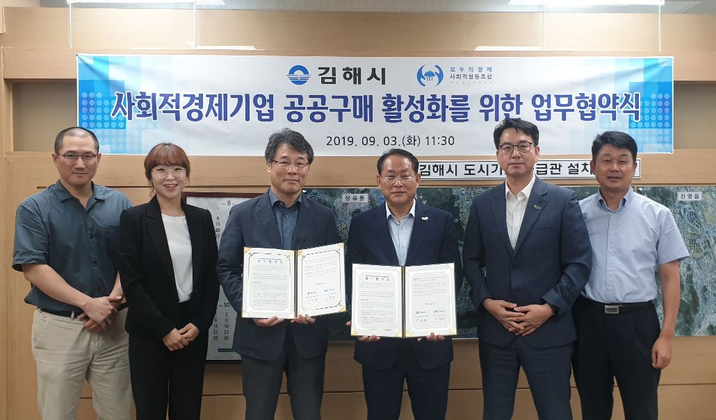 앞으로 시는 주요 구매 실적 빅데이터를 제공하고 플랫폼 운영사인 모두의경제 사회적협동조합은 이를 분석해 김해시 전용 사회적경제기업 제품 구매 시스템을 구축할 예정이다.