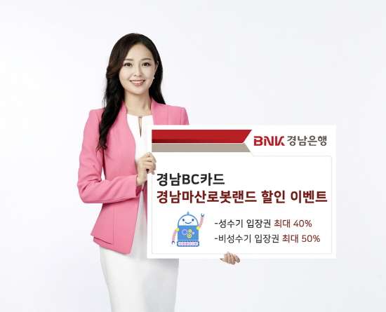 BNK경남은행(은행장 황윤철)은 국내 첫 로봇 테마파크 경남마산로봇랜드 개장을 축하해 지난 7일부터 ‘경남BC카드 경남마산로봇랜드 할인 이벤트’를 진행한다.