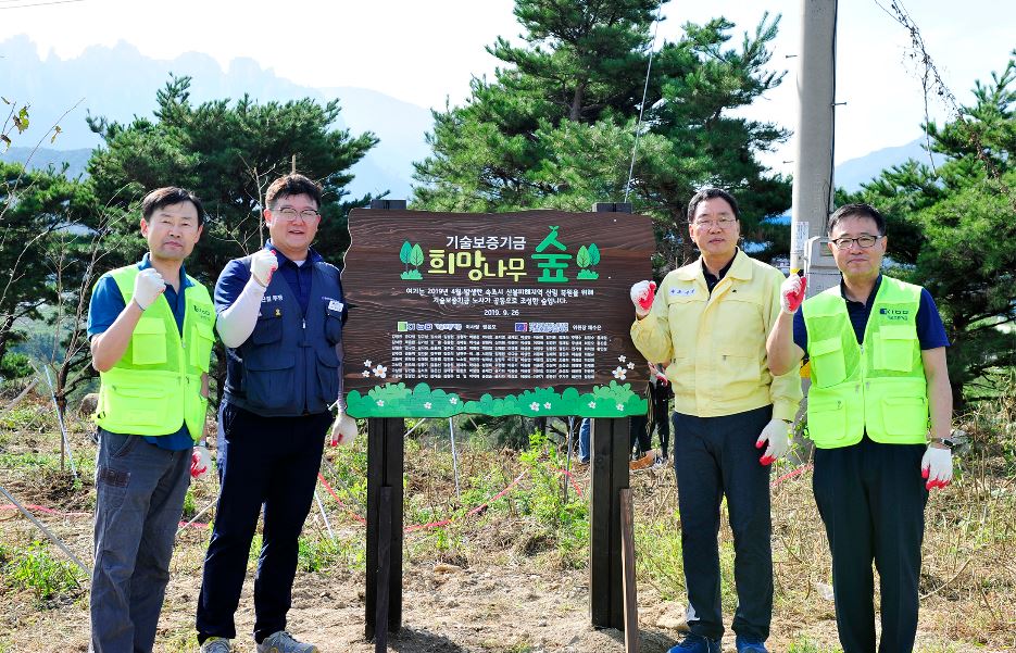 [부산=일요신문] 박영천 기자 = 기술보증기금(이사장 정윤모, 기보)은 지난 26일 강원도 속초시에서 노사공동으로 ‘희망나무숲 조성 나무심기 행사’를 가졌다.