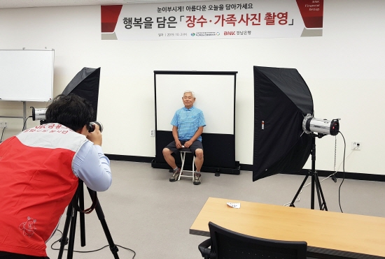 BNK경남은행(은행장 황윤철)은 2일 노인의 날을 맞아 ‘장수사진 촬영 봉사활동’을 실시했다.<사진>