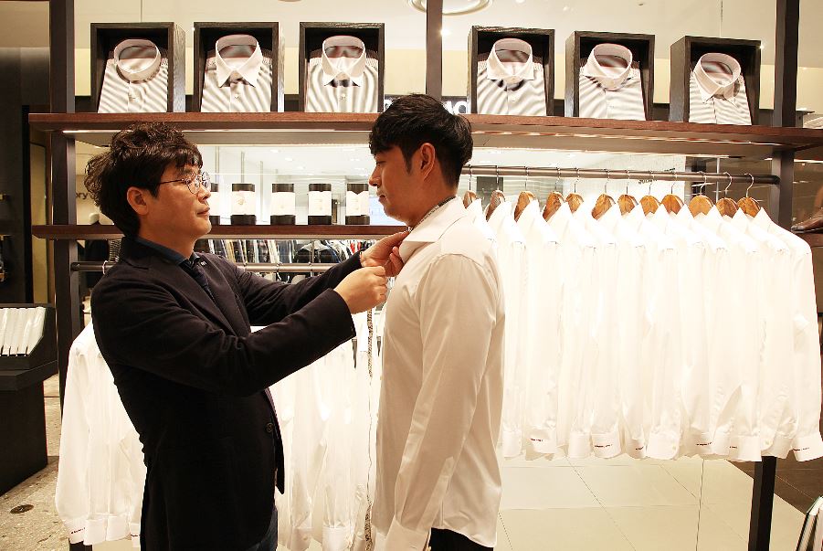 신세계 센텀시티 5층 ‘분더샵 카미치에’에서는 프리미엄 원단과 차별화된 제작 공법으로 맞춤 셔츠를 제작해준다.
