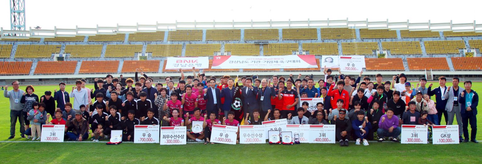 창원스포츠파크 주경기장 등 7개 축구장에서 분산해 열린 2019 BNK경남은행장기 경상남도 기관-기업체 축구대회는 BNK경남은행ㆍ경남도청ㆍ고성군청 등 경남 도내 22개 기관과 무학ㆍ현대로템ㆍ한화디펜스 등 12개 기업체 등 34개 기관-기업체가 출전했다.
