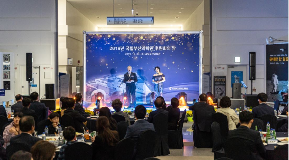 2019년 국립부산과학관 후원회의 밤은 과학꿈나무들에게 희망을 준 국립부산과학관 후원회원에 대한 감사와 존경의 마음을 표현하는 자리로 특히 올해는 고액 후원자에 대한 감사패 증정식과 후원회 교실 제막식이 함께 진행됐다.