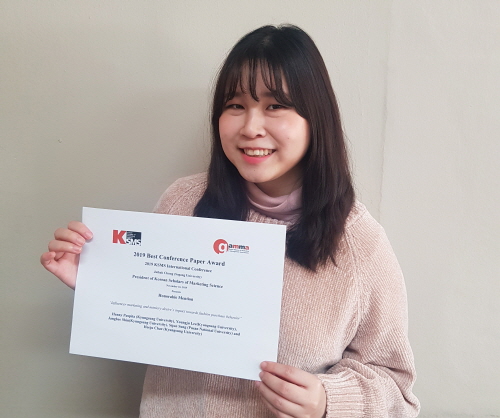 이번 행사는 KSMS 국제학술대회에서 발표된 논문 중 우수한 논문을 선정해 상을 수여했다. Henny Puspita 학생이 발표한 논문은 ‘Influencer marketing and mimicry desire’s impact towards fashion purchase behavior’로 SNS에서의 인플루언서 마케팅과 모방 욕구가 패션 제품의 구매행동에 미치는 영향에 대한 내용이다.
