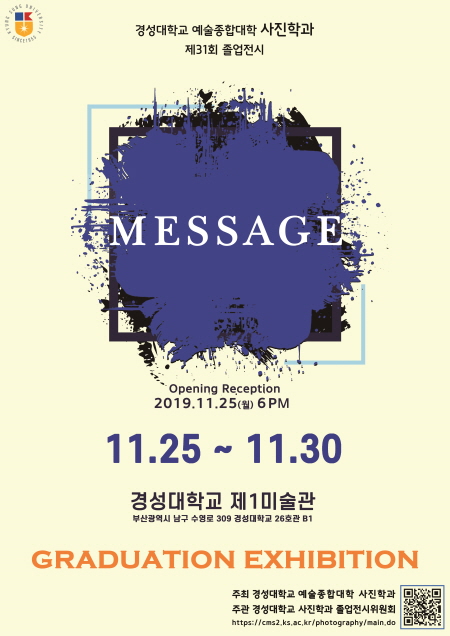 경성대학교(총장 송수건) 예술종합대학 사진학과(학과장 이재구교수)는 제31회 사진학과 졸업전시 ‘MESSAGE’전을 25일부터 30일까지 제1미술관에서 개최한다.