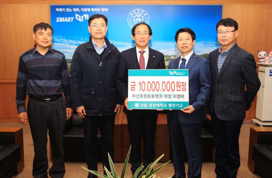 국립 경상대학교는 부산종합동물병원 이영락 원장이 대학발전기금 1000만 원을 출연했다