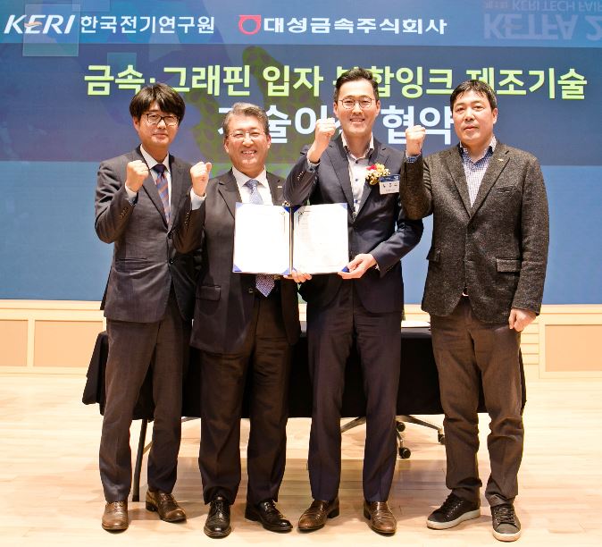 KERI는 개발 기술을 금속소재 및 잉크 제조 전문기업인 대성금속(주)(대표이사 노윤구)에 기술이전(착수기술료 5.5억원, 경상기술료 1.5% 조건)했다. 대성금속(주)은 이미 파일럿(pilot) 규모에 해당하는 월 1t의 구리-그래핀 복합 입자 대량 생산설비를 구축했고, 2020년 1분기에는 월 10t 규모까지 확대할 예정이다.
