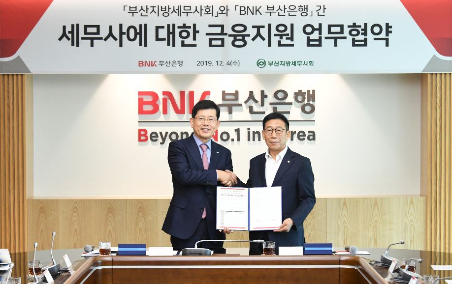 부산은행은 이번 협약을 통해 부산지방세무사회 소속 세무사를 대상으로 전문직 신용대출 상품인 BNK프로론 대출금리 우대, 외화 환전 우대, 전자금융 수수료 면제 등 다양한 금융서비스를 제공하기로 했다.