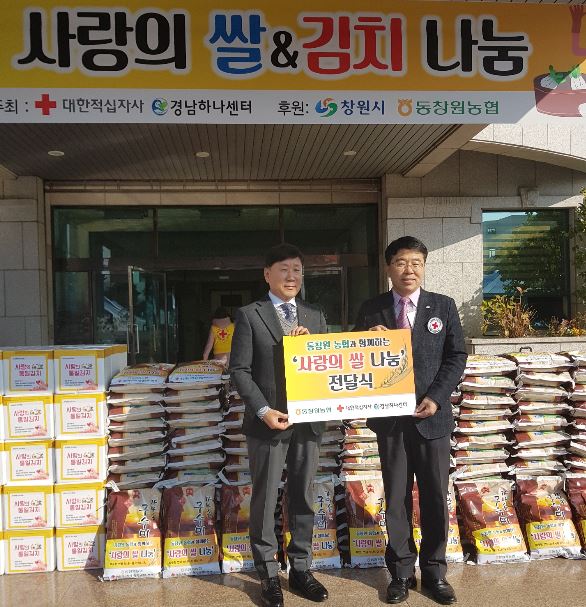 동창원농협(조합장 황성보)은 지난 4일 대한적십자사 경남지사 나눔의 집에서 경남지역 북한이탈주민과 지역 주민이 함께하는 ‘사랑의 김장나눔’ 행사에 참여해 쌀 10kg 250포대(1천만원 상당)를 전달했다.