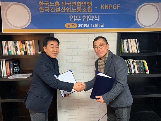 좌측 한국노총 건설산업노동조합 위원장 이귀형, 우측은 knpgf 회장 김병엽