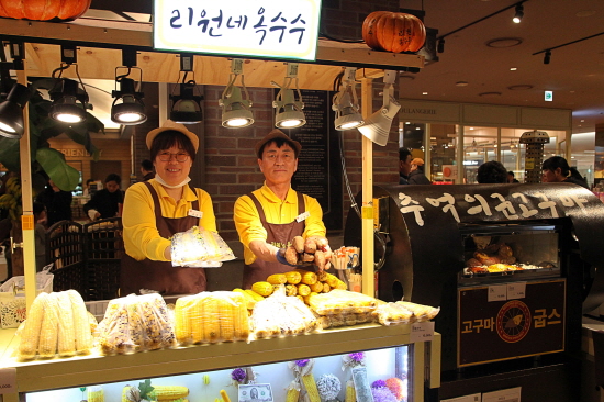 [부산=일요신문] 정동욱 기자 = 신세계 센텀시티 지하 1층 식품관에는 겨울철 별미 간식 군고구마와 옥수수를 판매해 눈길을 끌고 있다.