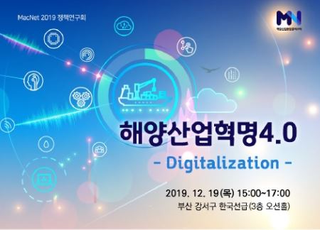 [부산=일요신문] 김희준 기자 = 해양산업통합클러스터(의장, KR 회장 이정기)는 부산시(시장 오거돈)와 함께 19일 부산 강서구 한국선급 본사 3층 오션홀에서 ‘해양산업혁명 4.0-Digitalization’ 정책연구회를 개최한다.