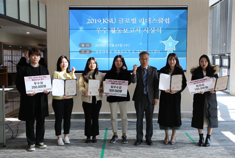 [부산=일요신문] 김희준 기자 = 경성대학교(총장 송수건) 대학일자리센터는 국제화시대에 알맞은 글로벌 인재 양성을 위해 ‘2019-2 해외취업동아리 글로벌리더스클럽 활동보고서 평가대회’를 개최하고 우수 활동 동아리에 대한 시상식을 진행했다.