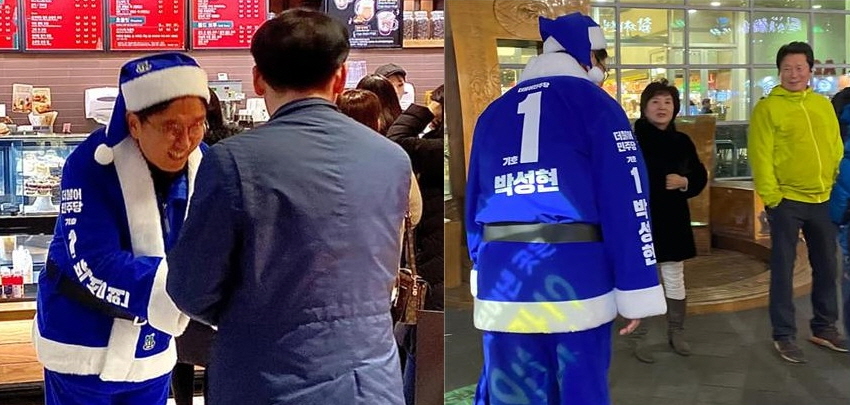 박성현 후보는 “예비 선거운동 기간을 맞아 동래구민들에게 즐거운 성탄절, 따뜻한 성탄절과 정치의 품격을 나누고 싶었다. 당의 색깔인 파란색 산타복으로 한때나마 시민들과 즐거운 시간을 보내 흐뭇했다”고 밝혔다.