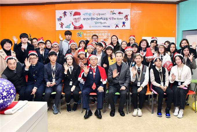 오거돈 부산시장은 크리스마스를 하루 앞둔 지난 24일 초량동의 부산다문화국제학교를 방문했다.