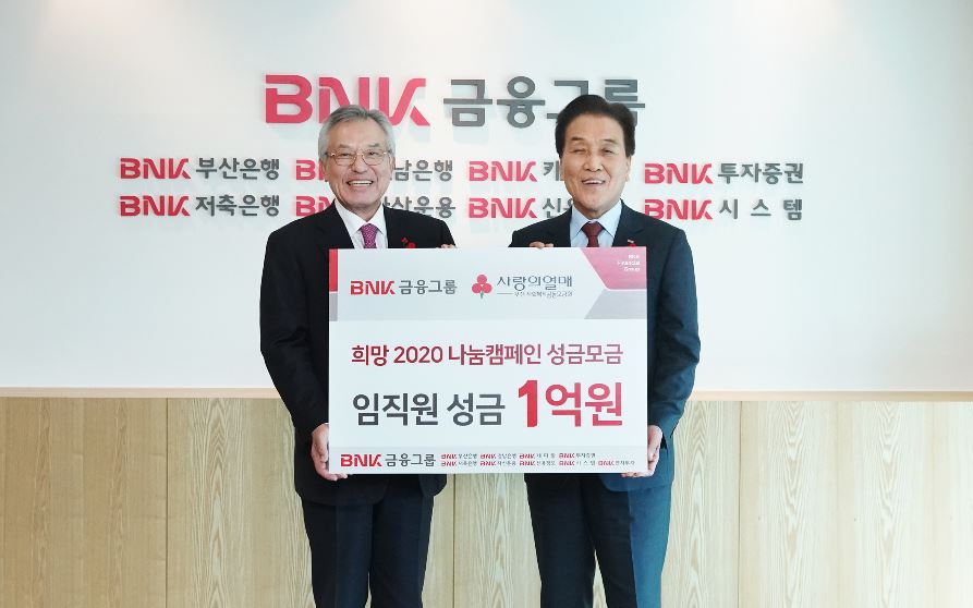 [부산=일요신문] 김희준 기자 = BNK금융그룹(회장 김지완)은 임직원의 온정을 모은 이웃사랑 성금 1억5천만원을 ‘희망 2020 나눔캠페인’에 전달했다.