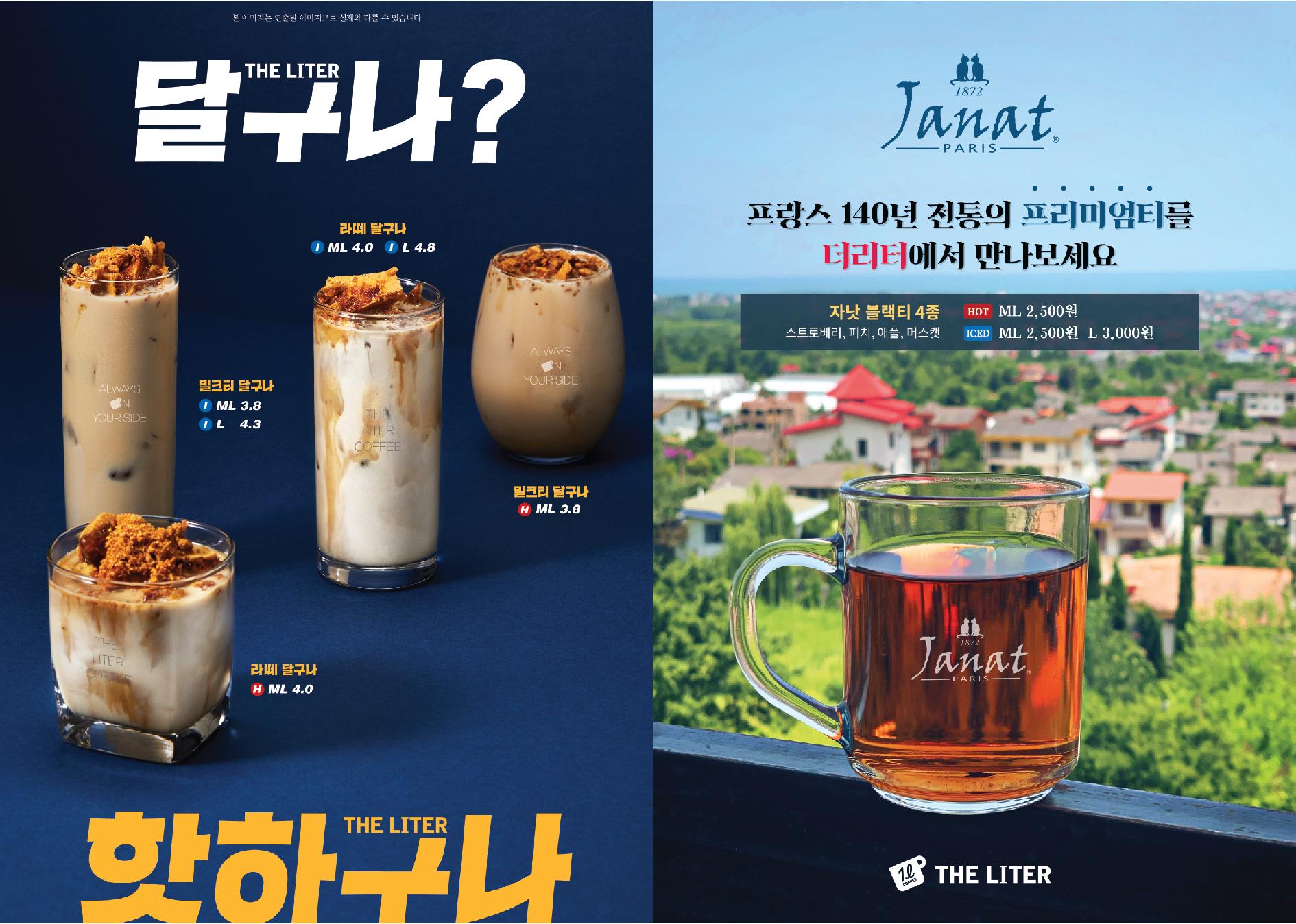 커피전문점 더리터는 오는 30일부터 밀크티 달구나, 라떼 달구나, 자낫 블랙티 등 겨울 신 메뉴 3종을 출시한다.