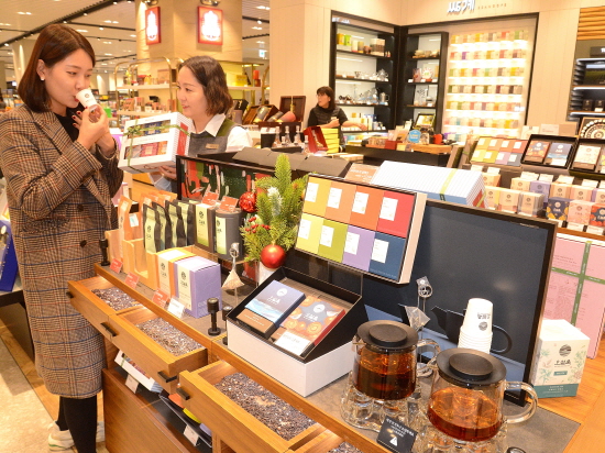 부산지역 롯데백화점 오설록 매장에서는 추운 겨울을 따뜻하게 보낼 수 있는 다양한 종류의 차를 판매한다.