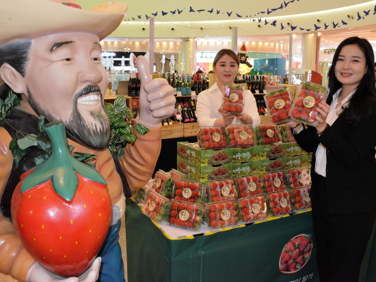 롯데백화점 광복점 지하 1층 식품관에 대한민국 농업기술 명인인 류지봉 명인이 생산한 ‘명인딸기’를 선보여 눈길을 끌고 있다.