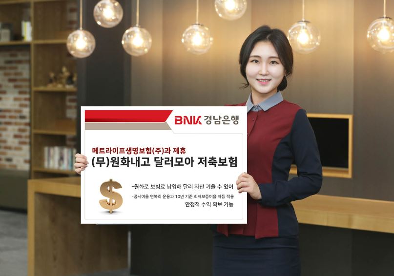 BNK경남은행(은행장 황윤철)은 메트라이프생명보험㈜과 제휴해 ‘(무)원화내고 달러모아 저축보험’을 판매하고 있다.