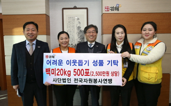 #전국자원봉사연맹, 김해시에 2,500만원 상당 백미 기탁
