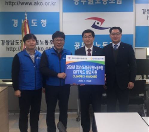 한동석 부장은 “경남도청공무원노동조합이 지역경제 활성화에 앞장서는데 우리농협이 금고은행으로서 Gift카드 발급 지원으로 동참하게 되어 매우 기쁘다”고 말했다.