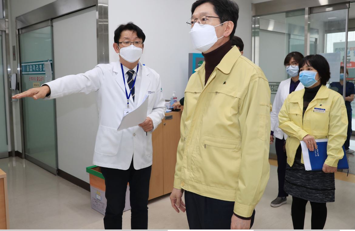 김경수 지사가 신종 코로나 바이러스 대응체계 점검을 위해 마산의료원과 마산보건소를 각각 방문했다.