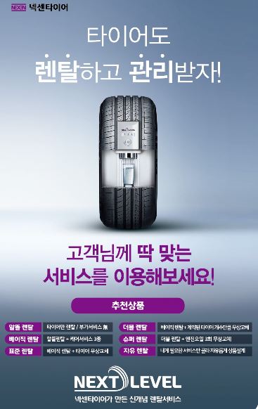 ‘넥스트레벨’은 넥센타이어가 업계 최초로 실시한 타이어 렌탈 서비스로 타이어를 렌탈하고 정기적인 타이어 점검 및 차량 관리를 제공받을 수 있는 서비스다.