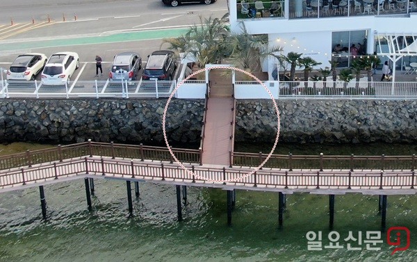 하지만 이 커피숍 앞 바다에는 시가 관광객 유치사업으로 설치한 ‘성포해안데크’가 있다. 이 데크는 국민의 혈세로 만들어진 것으로 공공시설물에 속해 누구든지 개인 사유화하는 것은 공공시설물을 무단 점유한 것이나 진배없다.