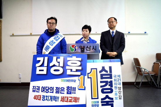 양산갑 김성훈·심경숙 예비후보는 양삼운 전 양산일보 대표와 함께 17일 양산시청 프레스센터에서 기자회견을 갖고 “지난 15일 발표된 더불어민주당 중앙당 공관위의 공천 심사 결과에 대해 납득할 수 없어 재심을 신청과 함께 공정한 경선을 요구한다”고 밝혔다.