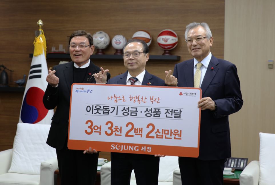 세정이 이웃돕기 성금과 성품 3억 3천여만원을 부산사회복지공동모금회를 통해 기탁했다.