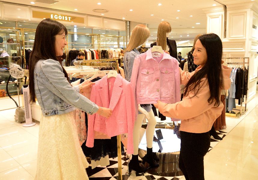 롯데백화점 부산본점 2층 에고이스트 매장에서는 봄 시즌을 맞이해 화사한 핑크 자켓을 선보이고 있다.