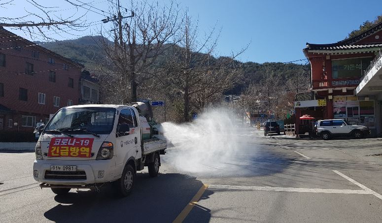 코로나19 방역차량 방역 모습
